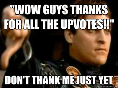 "Wow guys thanks for all the upvotes!!" don't thank me just yet