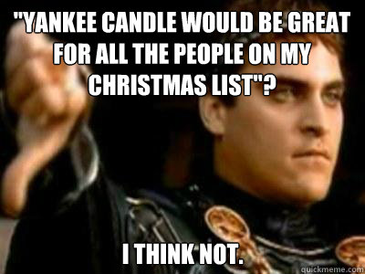 "yankee candle would be great for all the people on my christmas list"? I think not.