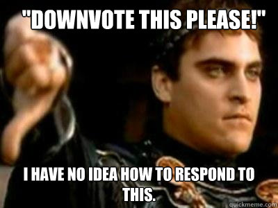 "Downvote this please!" I have no idea how to respond to this.