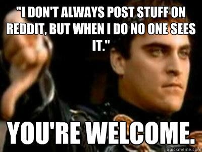 "I Don't Always Post Stuff on Reddit, but when i do no one sees it." You're welcome.