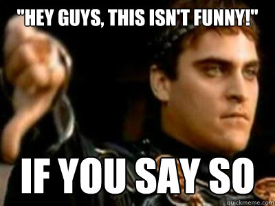 "Hey guys, this isn't funny!" If you say so