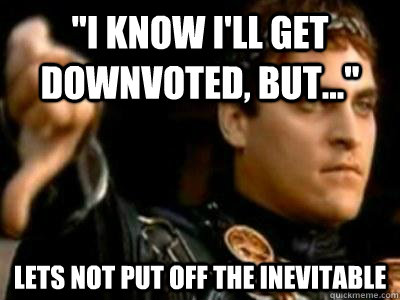 "i know i'll get downvoted, but..." lets not put off the inevitable