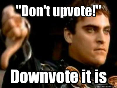 "Don't upvote!" Downvote it is