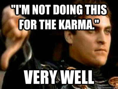 "I'm not doing this for the karma." very well