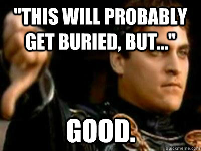 "This will probably get buried, but..." Good.
