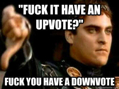 "Fuck it have an upvote?" Fuck you have a downvote