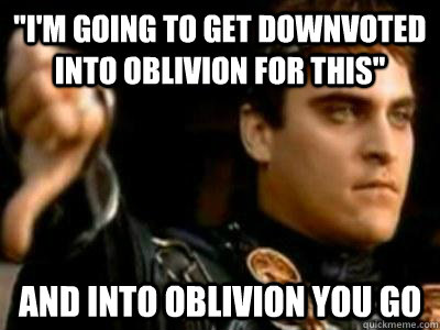 "I'm going to get downvoted into oblivion for this" and into oblivion you go