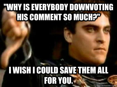 "Why is everybody downvoting his comment so much?" I wish I could save them all for you.