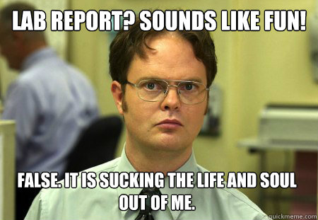 lab report? sounds like fun! False. It is sucking the life and soul out of me.