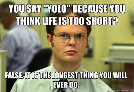 You say "yolo" because you think life is too short? False. It is the longest thing you will ever do.