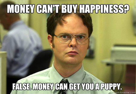 Money can't buy happiness? False. Money can get you a puppy.