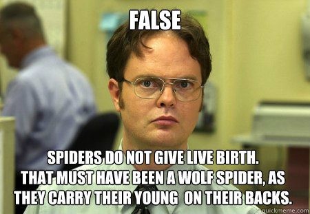 False Spiders do not give live birth. That must have been a wolf spider, as they carry their young on their backs.