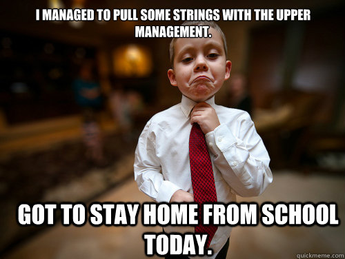 I managed to pull some strings with the upper management. Got to stay home from school today.