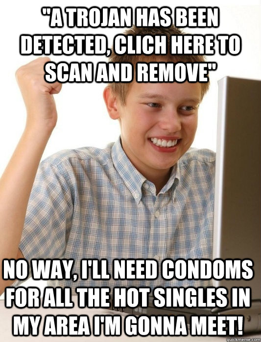 "a trojan has been detected, clich here to scan and remove" no way, i'll need condoms for all the hot singles in my area i'm gonna meet!