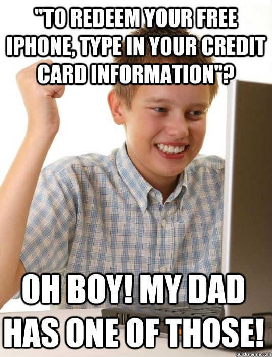 "To redeem your free iphone, type in your credit card information"? Oh boy! My dad has one of those!