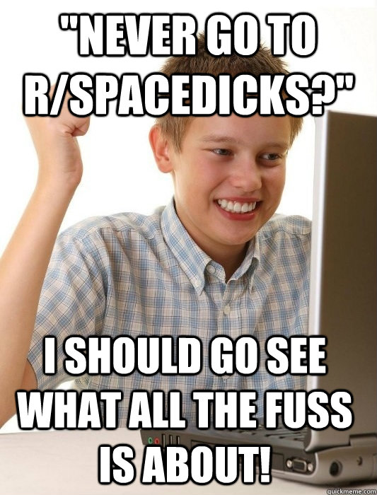 "Never go to R/spacedicks?" I should go see what all the fuss is about!