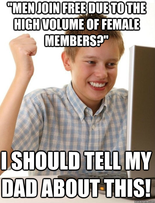 "Men join free due to the high volume of female members?" I should tell my dad about this!
