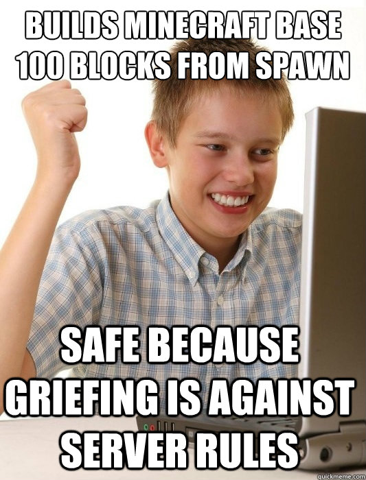 Builds minecraft base 100 blocks from spawn safe because griefing is against server rules