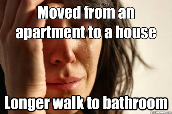 Moved from an apartment to a house Longer walk to bathroom