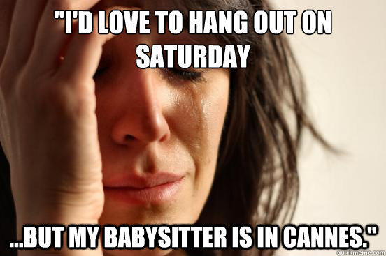 "I'd love to hang out on Saturday ...but my babysitter is in Cannes."