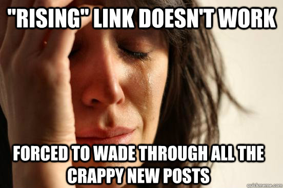 "Rising" link doesn't work Forced to wade through all the crappy new posts