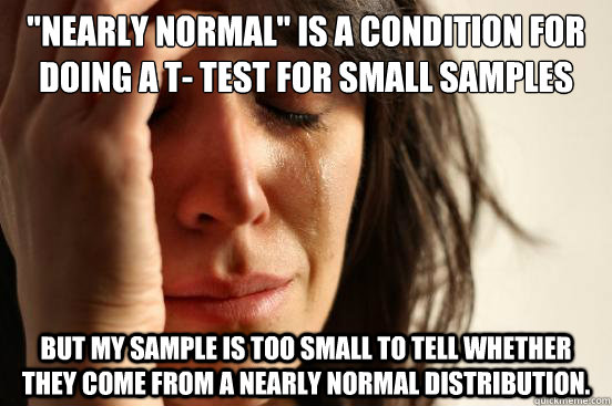 "Nearly normal" is a condition for doing a t- test for small samples but my sample is too small to tell whether they come from a nearly normal distribution.