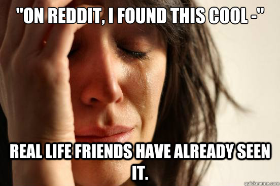 "On reddit, I found this cool -" Real life friends have already seen it.