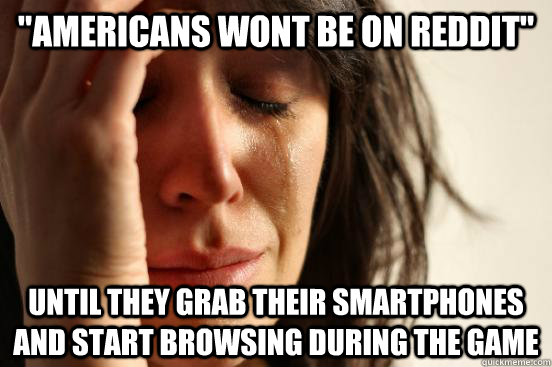 "americans wont be on reddit" until they grab their smartphones and start browsing during the game