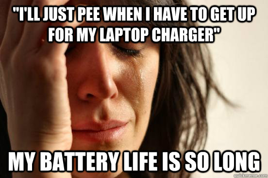"I'll just pee when i have to get up for my laptop charger" My battery life is so long