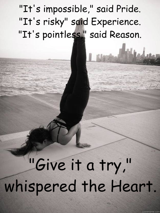 "It's impossible," said Pride. "It's risky" said Experience. "It's pointless," said Reason. "Give it a try," whispered the Heart.”