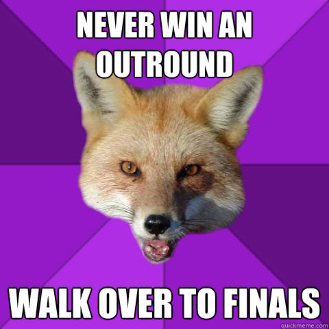 Never win an outround Walk over to finals