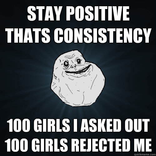 stay positive thats consistency 100 girls i asked out 100 girls rejected me