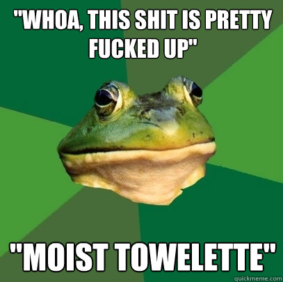 "whoa, this shit is pretty fucked up" "moist towelette"