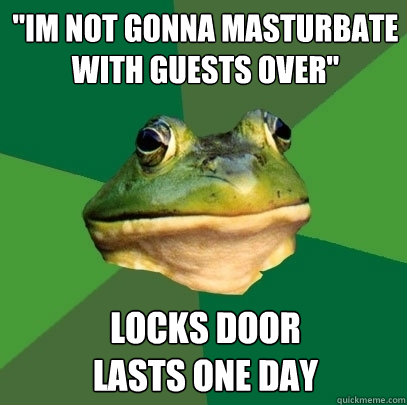 "Im not gonna masturbate with guests over" locks door lasts one day