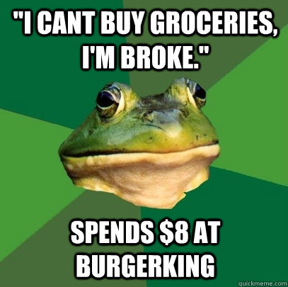"I cant buy groceries, I'm broke." Spends $8 at burgerking
