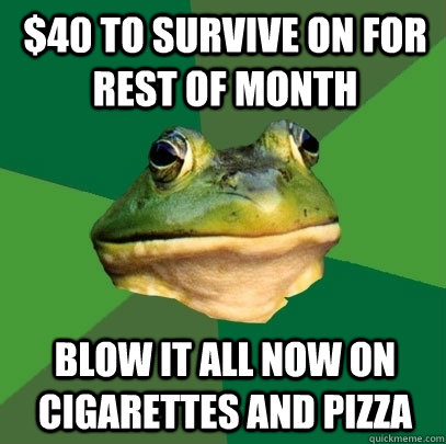 $40 To Survive On For Rest of MOnth Blow it all now on cigarettes and pizza