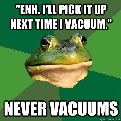 "Enh. I'll pick it up next time I vacuum." Never vacuums