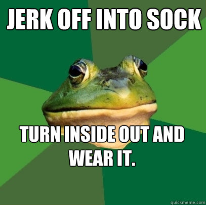 jerk off into sock TURN INSIDE OUT AND WEAR IT.