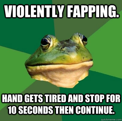 Violently fapping. Hand gets tired and stop for 10 seconds then continue.