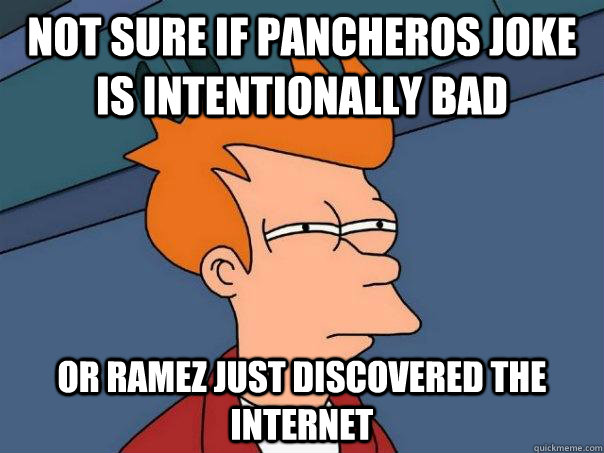 Not sure if Pancheros joke is intentionally bad Or Ramez just discovered the internet