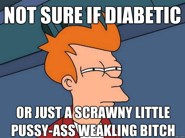 not sure if diabetic or just a scrawny little pussy-ass weakling bitch
