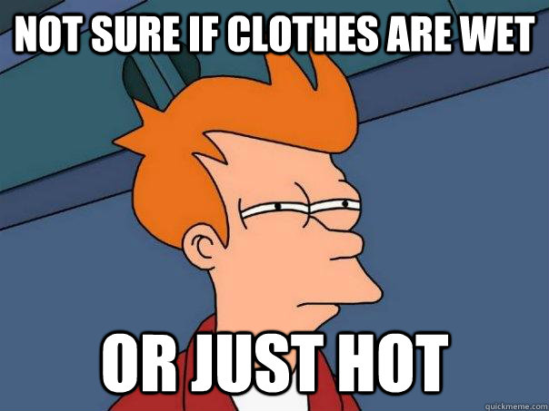 NOT SURE IF CLOTHES ARE WET OR JUST HOT