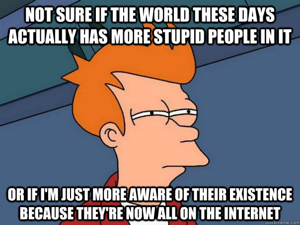 Not sure if the world these days actually has more stupid people in it Or if I'm just more aware of their existence because they're now all on the Internet