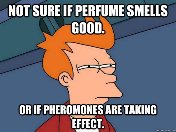 Not sure if perfume smells good. Or if pheromones are taking effect.