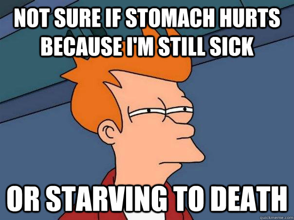 Not sure if stomach hurts because I'm still sick Or starving to death