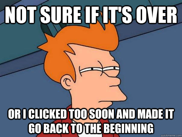 Not sure if it's over Or I clicked too soon and made it go back to the beginning