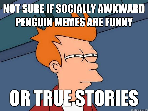 not sure if Socially Awkward Penguin memes are funny or true stories