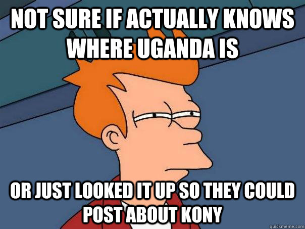 Not sure if actually knows where uganda is Or just looked it up so they could post about kony