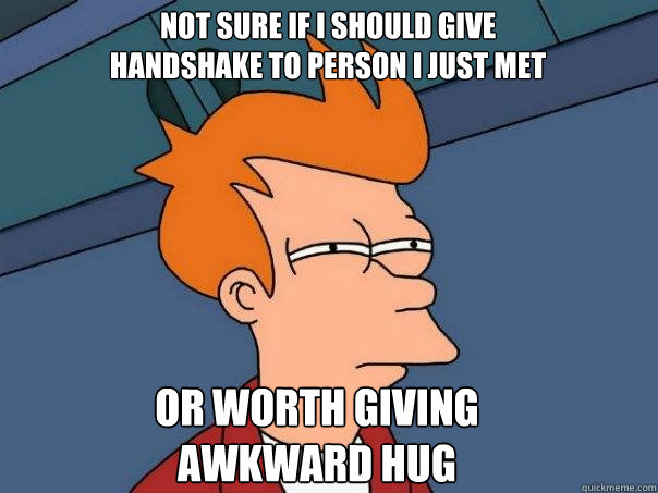 Not Sure if I should give handshake to person I just met Or worth giving awkward hug