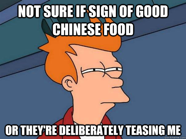 Not sure if sign of good Chinese food Or they're deliberately teasing me